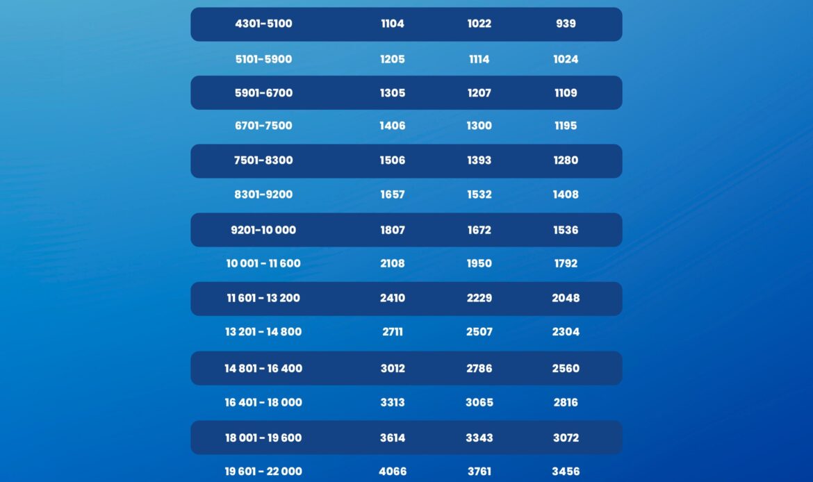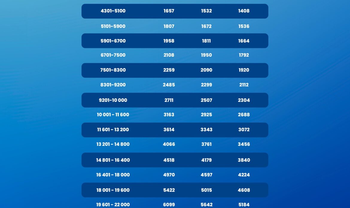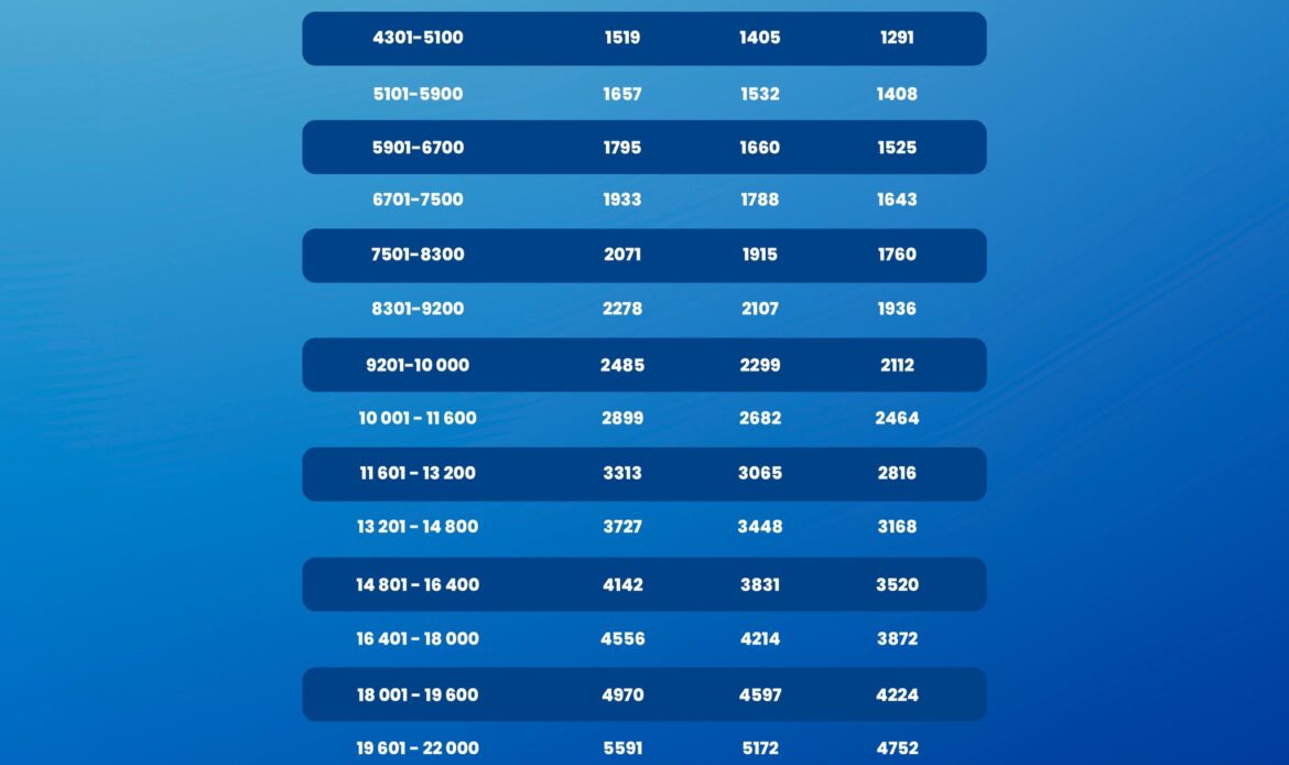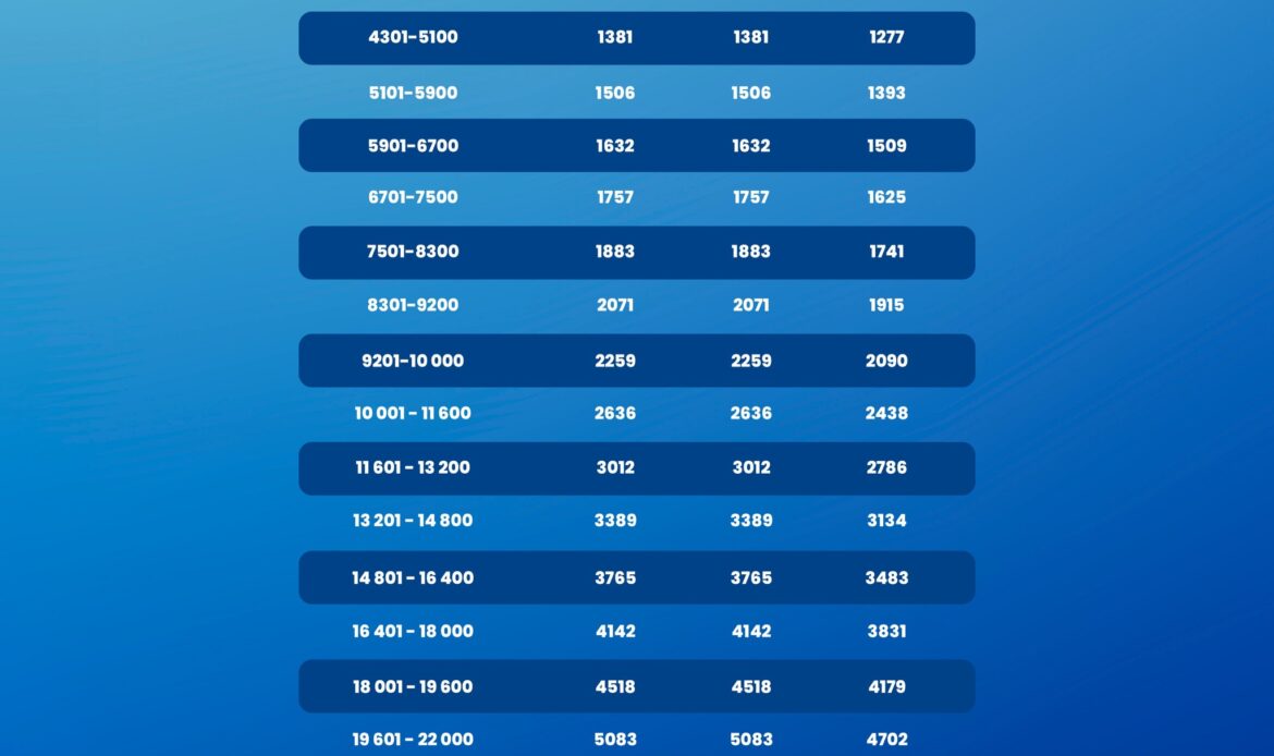 - Powyżej 8300 zł dochodu wzrost wynosi 15% za każde 800 zł.